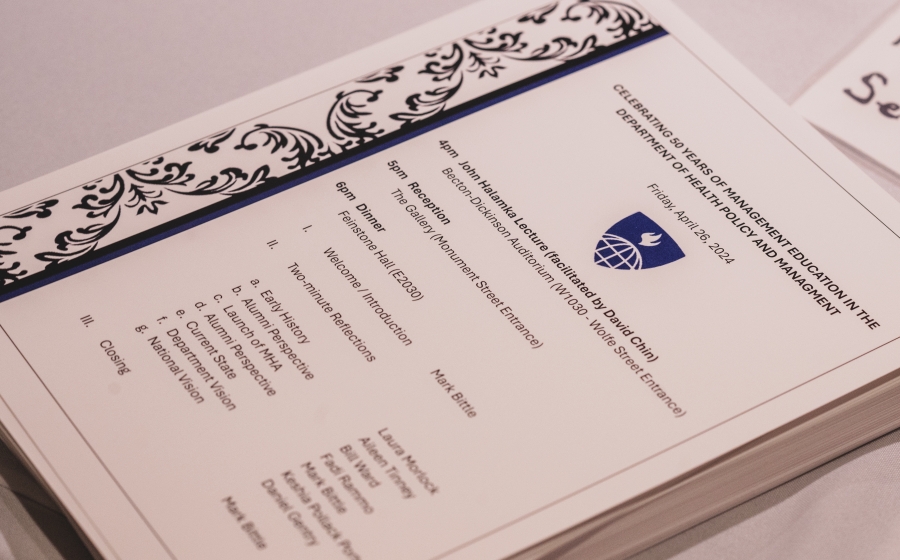On Friday, April 26, 2024, we celebrated the 50th anniversary of our Management in Health Education program! The evening kicked off with an illuminating lecture from John D. Halamka, MD, MS, president of the Mayo Clinic Platform on the impact of AI in healthcare. Faculty, students and alumni then mingled at a cocktail reception and dinner featuring talks from Department Chair Keshia Pollack Porter, PhD; DrPH Program Director Mark Bittle, DrPH; and class of 1998 alum Aileen Tinney, MHA, President & CEO of Keswick among others.