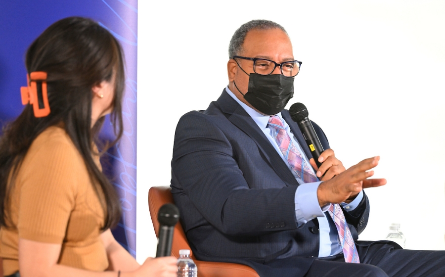 Divad Sanders, program director of the Newark Overdose Response Team, addresses audience while answering panel discussion question.