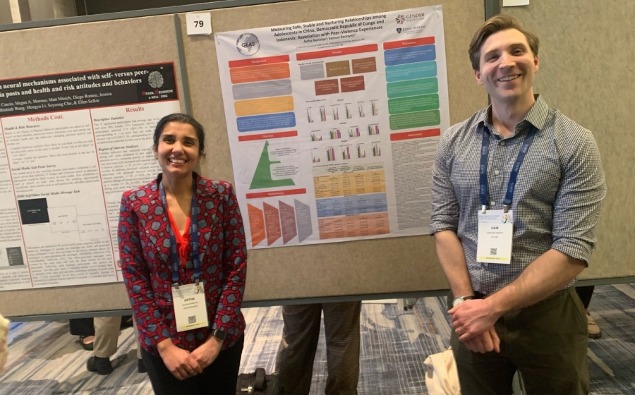 Astha Ramaiya and Sam Beckwith presented a poster at the annual Society of Adolescent Health and Medicine conference in Baltimore, MD. The poster used the Global Early Adolescent data from Democratic Republic of Congo, China and Indonesia to understand the cross-sectional and longitudinal associations between Safe, Stable and Nurturing Relationships and peer violence victimization and perpetration. Safe, Stable and Nurturing Relationships were protective for cross-sectional associations across all countries but not longitudinally; suggesting adolescent relationships transition over time.