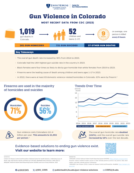 Download and share our state factsheet with the most recent CDC data on gun violence in Colorado.