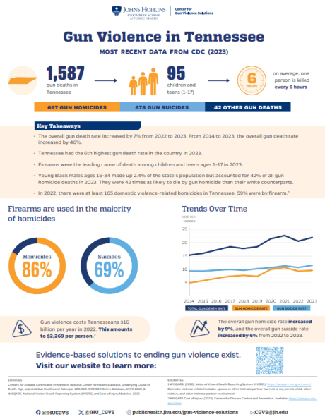 Download and share our state factsheet with the most recent CDC data on gun violence in Tennessee.