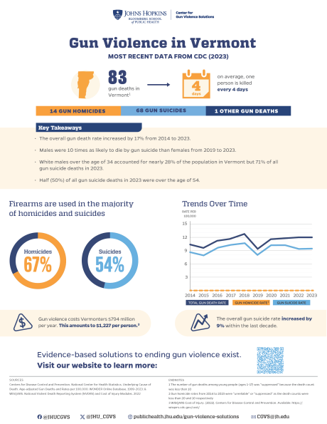 Download and share our state factsheet with the most recent CDC data on gun violence in Vermont.