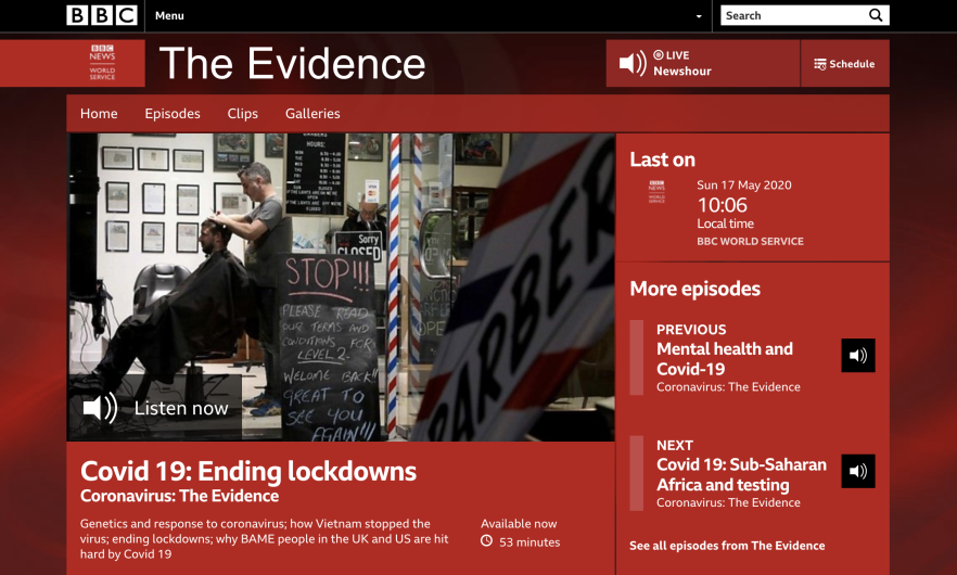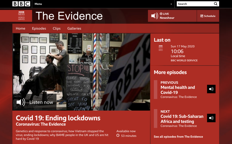 In the May edition of the “The Evidence,” an audio publication of the BBC, Dr. Cooper joins a panel of international scholars to discuss multiple aspects of the COVID-19 crisis. The episode includes info on how genetics may affect individual responses to coronavirus; how Vietnam stopped the virus; how countries should be ending lockdowns; and why black and minority communities in the UK and US are hit hard by COVID-19.
