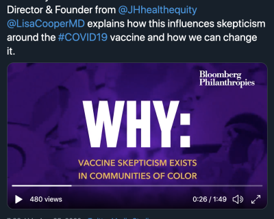 Read the latest media coverage featuring Director Lisa A. Cooper, MD, MPH, and other Johns Hopkins Center for Health Equity faculty and affiliates.