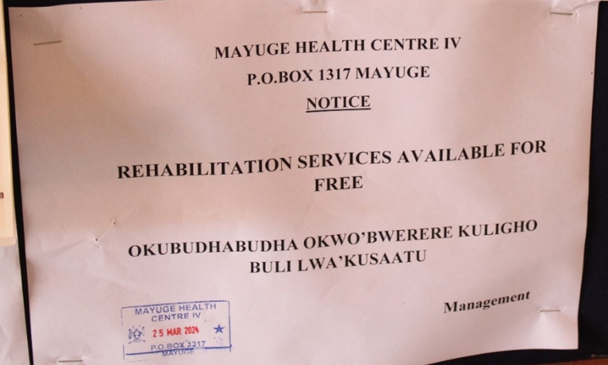 • Hiring part-time physiotherapists to see clients on select days at Mayuge Health Centre IV.