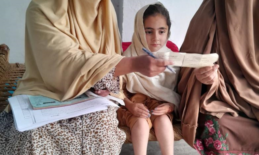After conducting an assessment, Nazia, a Lady Health Worker in the district of Swat, identified Anabia’s clubfoot condition and referred her to specialized services. Photo courtesy of ReLAB-HS.