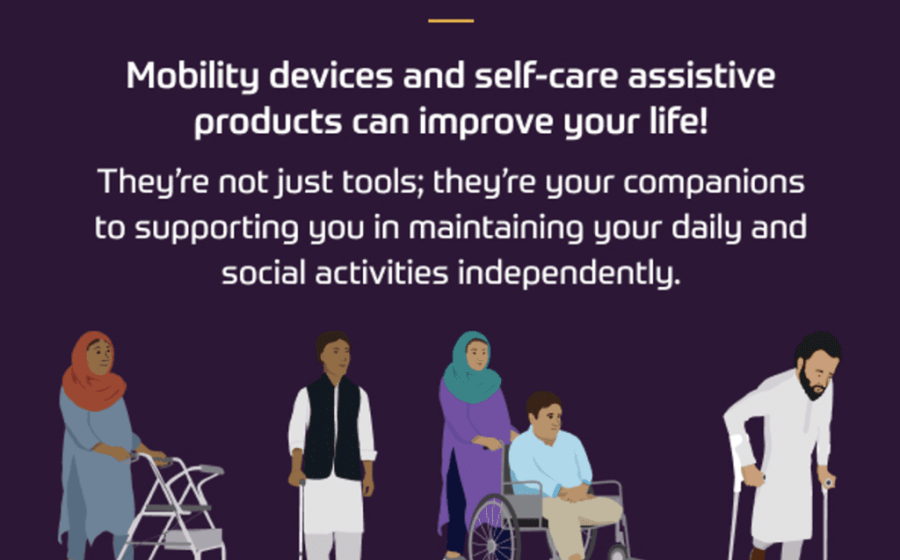 Targeted messaging for various audiences across the health system levels and the community at large requires creative thinking and cultural relevance. In Pakistan, ReLAB-HS collaborated with diverse stakeholders at the national and provincial levels to design culturally appropriate posters in local languages to share with communities. Key contributors included governing and regulatory bodies, such as the Ministry of National Health Services, Regulations, and Coordination and the provincial health departments of Khyber Pakhtunkhwa and Sindh, health care provider groups that specialize in rehabilitation and AT services, rehabilitation research and training institutions, and user advocacy groups.