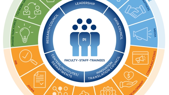 The research@BSPH ecosystem aims to foster an interdependent sense of community among faculty researchers, their research teams, administration, and staff that leverages knowledge and develops shared responses to challenges. The ultimate goal is to work collectively to reduce administrative and bureaucratic barriers related to conducting experiments, recruiting participants, analyzing data, hiring staff, and more, so that faculty can focus on their core academic pursuits.