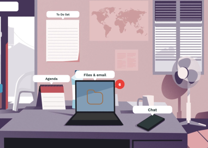 - Hear informal office chatter at the Coffee Corner