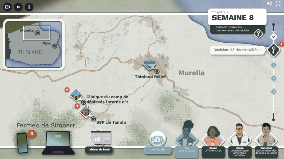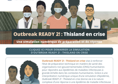 Outbreak READY 2 ! : Thisland en crise est une simulation numérique en ligne conçue pour les praticiens de la santé humanitaire. Dans Outbreak READY 2 ! : Thisland en crise, vous jouez le rôle d’un responsable de programme de santé qui dirige la réponse sanitaire d’une ONG internationale de taille moyenne appelée READY. L’ONG opère dans Thisland, un pays fictif à faible revenu qui a connu récemment un conflit civil, des déplacements massifs de population et une épidémie de grippe. La simulation est divisée en trois chapitres qui suivent l’évolution d’une épidémie depuis sa première détection jusqu’à sa propagation au sein de la population. En tant que gestionnaire de programme de santé, l’apprenant doit identifier, évaluer et interpréter les sources de données pour planifier et mettre en œuvre une réponse intégrée à l’épidémie qui donne la priorité à la communication et à l’engagement communautaire, aux principes de protection, ainsi qu’à la sécurité et au bien-être du personnel.